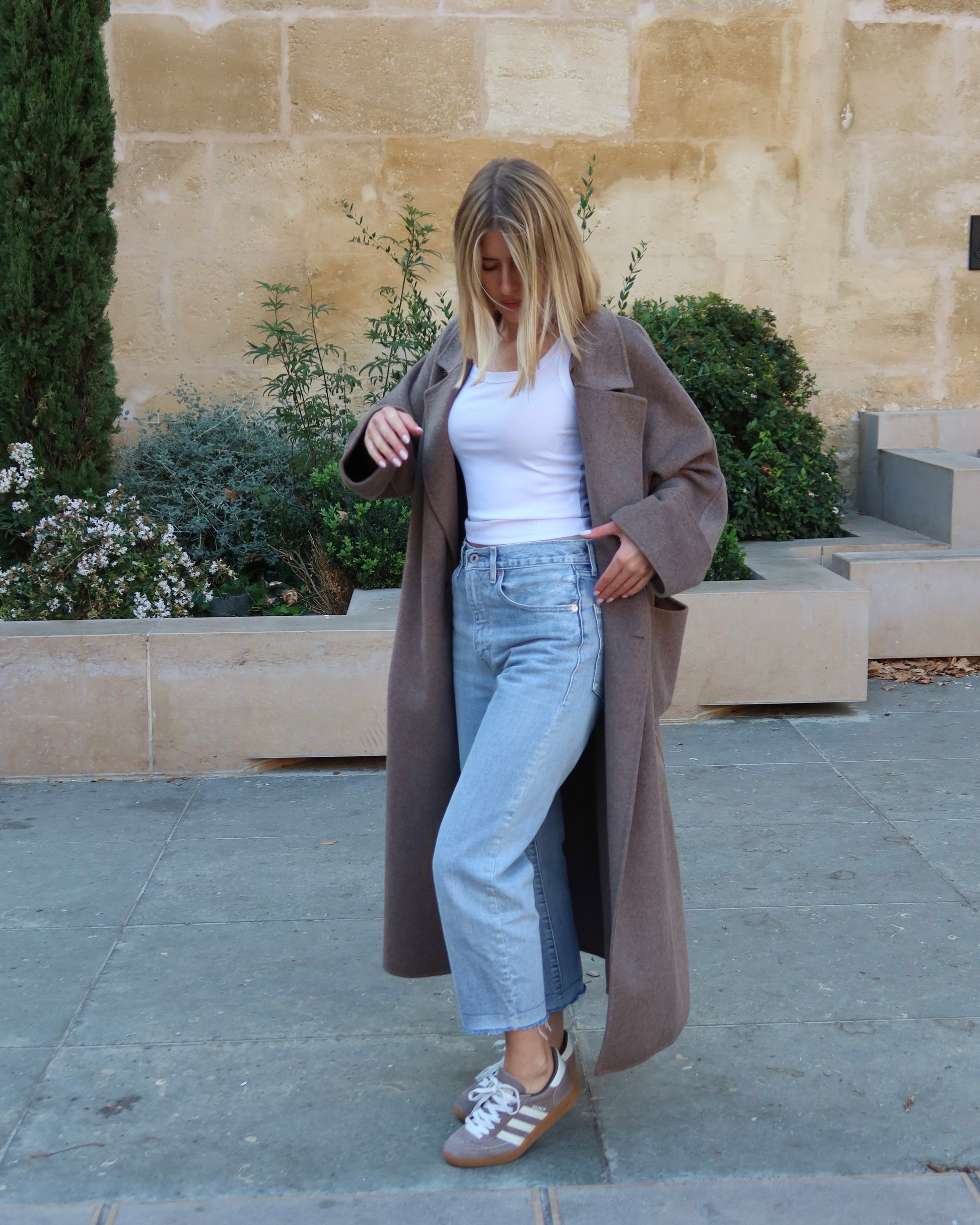 Un manteau long au tombé fluide, au style minimaliste et raffiné. Parfait pour la mi-saison, il apporte une touche lumineuse et chic à toutes les silhouettes.